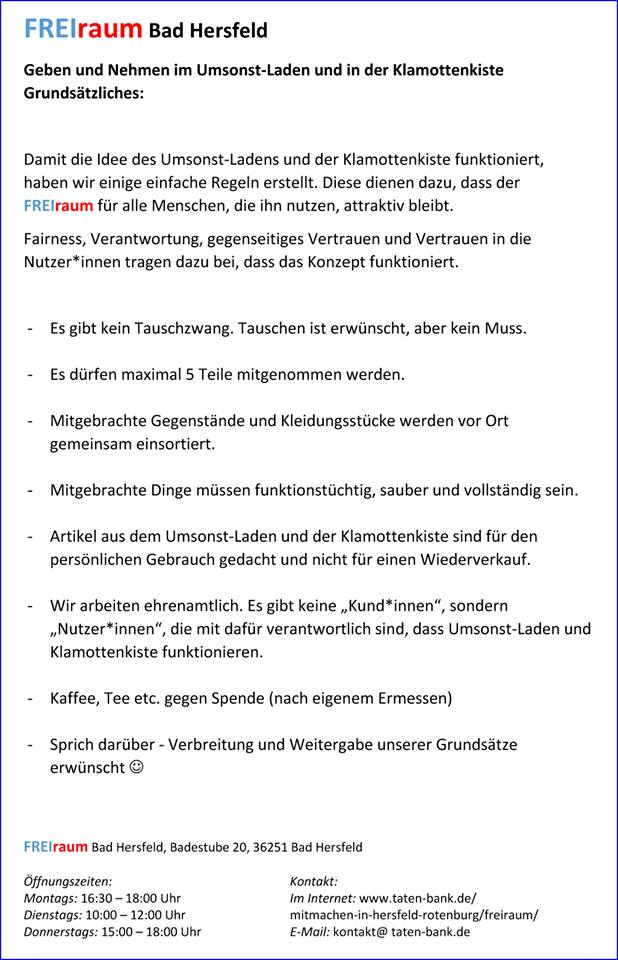 Von 2016 bis 2020 befand sich ein solcher FREIraum im alten Buchcafe in der Badestube 20, Bad Hersfeld.